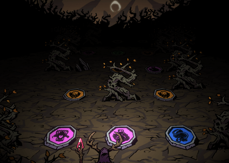 When you start the game, click on one of the nodes in front of you to progress forward. Each node will trigger a different event.